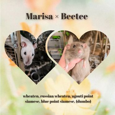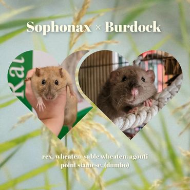 My rattery's aims are multifaceted. I want to produce healthy and well rounded rats. The line is focused around burmese and wheaten with the russian blue gene. Sable and siamese are possible outcomes due to the genetics at play. I will be breeding for health and an overall good type. I do not breed with the intention of producing pets for others, however, there will likely be rats available after I have selected my picks to continue the line and support other breeders where I can.