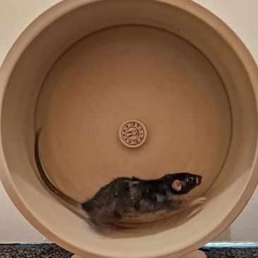 Grover is a sweet sweet boy and loves us as much as we love him. He loves to just stand there and spin the wheel rather than run on it, weird I know.