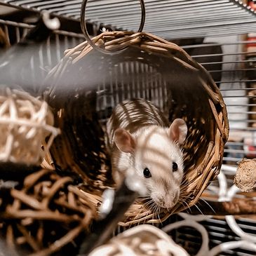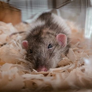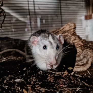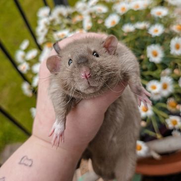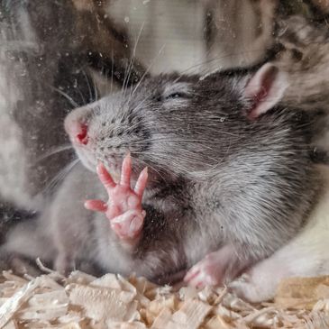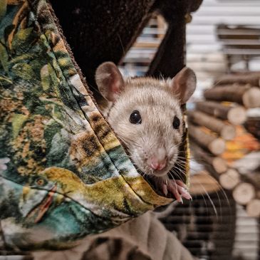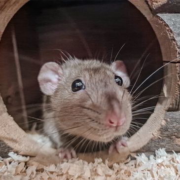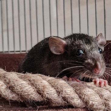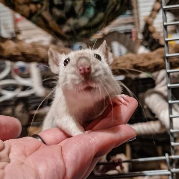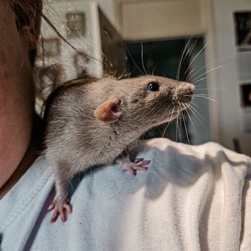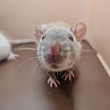Toast came to us after a friend decided that her rat keeping journey was coming to an end. He's much more of a rat's rat but he does enjoy some attention at the cage bars, so long as you don't touch him.
